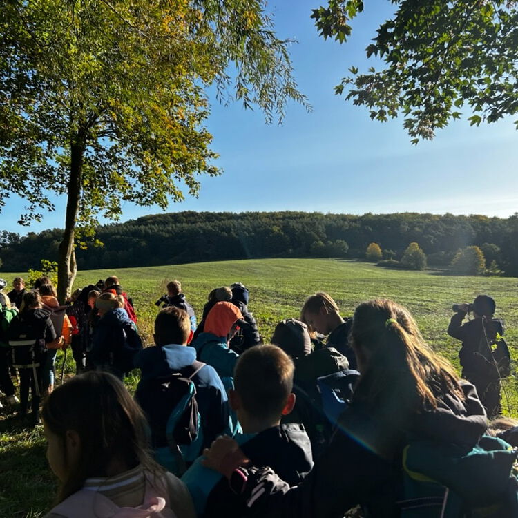 Wandertag heißt oft nicht nur Lernen an einem anderen Ort, sondern schlichtweg „Wandern“. Und so ging es für die Schülerinnen und Schüler der dritten Klassen am 11.10.2024 mit dem Bus nach Grevesmühlen bis zum Krankenhaus und dann zu Fuß in einem ordentlichen Marsch Richtung Iserberg. Das ist die zweitgrößte Erhebung im Umkreis. Auf ca. 102m Höhe lässt sich der Santower See spielend überblicken und bei klarem Wetter reichen die Blicke zur Wohlenberger Wiek, nach Klütz und bis hin zur Radarstation Elmenhorst. Auf der Aussichtsplattform genossen die Kinder ihr Frühstück und die Blicke durch die Ferngläser, bevor es um den Ploggensee herum, wieder zurück zum Bus ging. [CF]