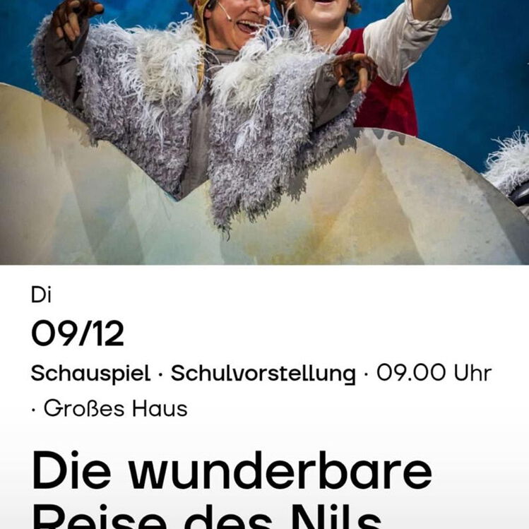 In diesem Schuljahr fuhren wir am 09.12.2025 ins Theater zu Lübeck. Dort nahmen uns ein fantastisches Bühnenbild, einzigartige Schauspieler und Schauspielerinnen sowie orchestrale Musik mit auf "Die wunderbare Reise des Nils Holgersson". Die Reise führt den jungen Nils mit seiner Hofgans Martin und einem Wildgänseschwarm unter der Führung der weisen Gans Akka von Kebnekajse durch ganz Schweden, wo er Gefahren meistert und Freundschaften schließt. Gespannt verfolgten unsere Kinder die Geschichte um Nils, Martin und die wilden Gänse.